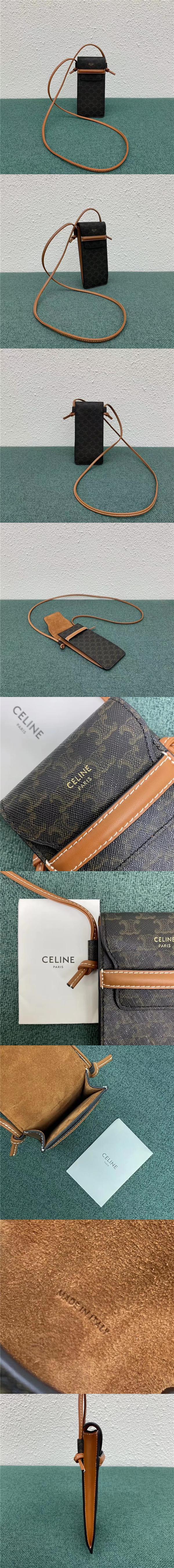 高仿賽琳/Celine TRIOMPHE 手機包, 選用經典耐看的花拼接小牛皮精心裁制而成,有著高顏值的復古文藝氣息,手機包型,復古又帥氣,又有點可愛,超級精致小巧,款號:100333