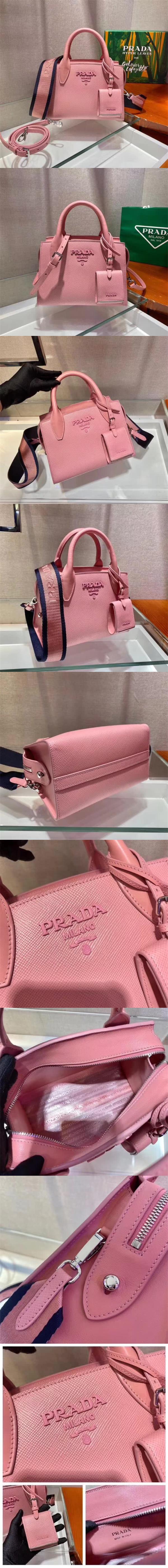 高仿普拉達/Prada 手提包,采用彩色尼龍和Saffiano皮革制作的兩條可拆卸肩帶,不同場合不同衣著搭配可以調換,設計巧妙,飾有同色徽標姓名標牌,顯得格外與眾不同 ,大氣又時尚,款號:1BA269