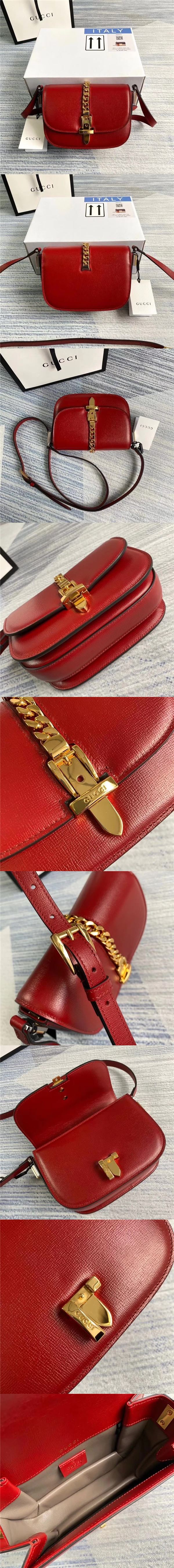 古馳/Gucci Slvie 1969 肩背包,采用織紋皮革制作,包造型略圓潤,翻蓋上匠心點綴窄版金色調金屬鏈,非常精致,肩帶可在肩背和斜跨之間自由轉換,款號:615965【編號】615965#C028【顏色】紅色【尺寸】17 X 12.5 X 7cm【規格】翻蓋開合皮革襯裡可調節肩帶【附屬品】防塵袋