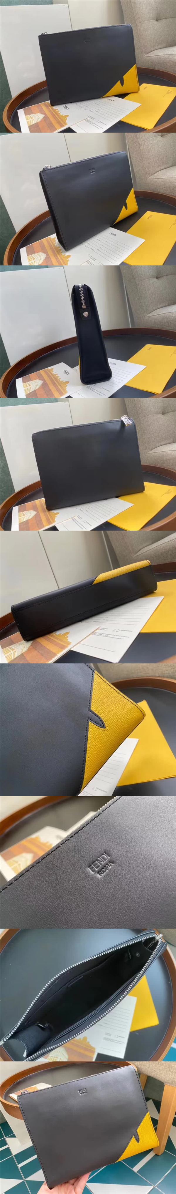 【高仿】芬迪/Fendi 手拿包,采用小牛皮精心裁制而成,飾有BAG BUGS 眼睛圖形,鍍鈀處理金屬制品