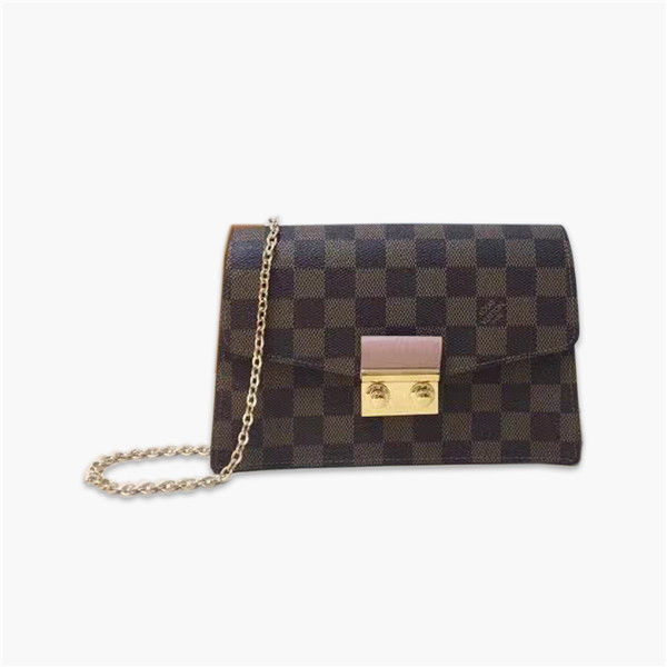 高仿路易威登/LV Croisette 鏈條包,融合 Damier Ebene 帆佈與彩色皮革,點綴硬箱傳承至今的 S-lock 鎖扣,展現標志性設計理念,款號:N60287