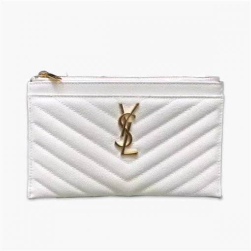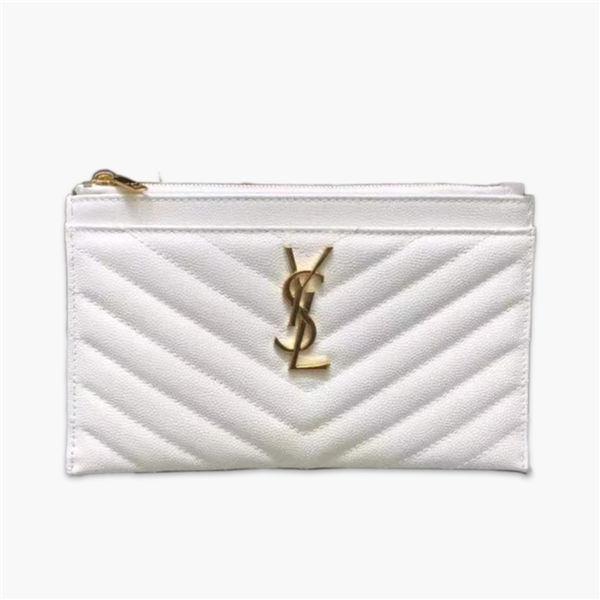 聖羅蘭/YSL 手拿包,采用球紋顆粒紋理絎縫裁制而成,飾以 YSL 聯結金屬標志,休閑時尚搭配盡顯高端大氣,款號:504922【編號】504922#Y073【顏色】白色【尺寸】20 X 12 X 1 cm【規格】拉鏈開合正面隔層織物襯裡內貼袋【附屬品】防塵袋