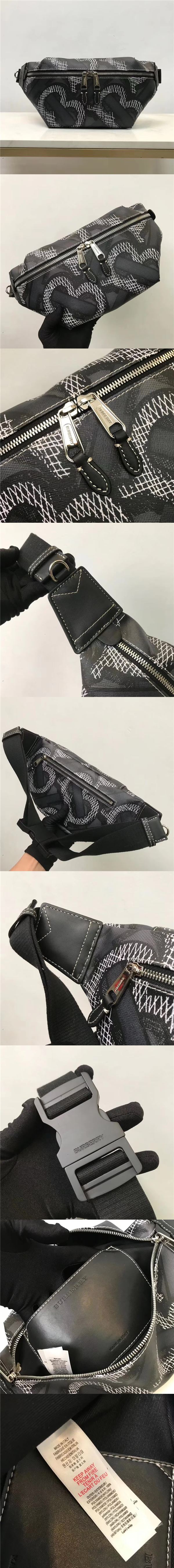 高仿巴寶利/Burberry 腰包,借鑒 1990 年代街頭風格,選用品牌環保帆佈制作,包款印有專屬標識印花,可用背帶斜背或系於腰間攜帶,款號:80331541