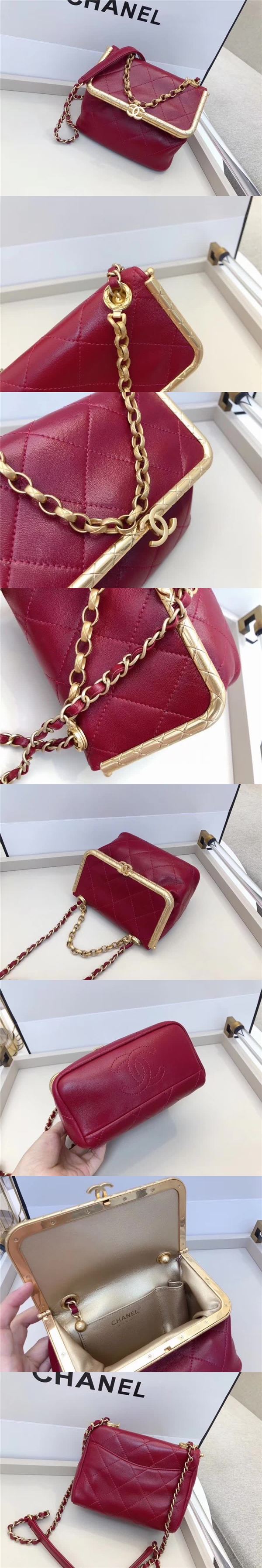香奈兒/Chanel Kiss Lock Bag,這個款太可啦,在搭配裡更顯高級品味,日常口紅,鑰匙都能駕馭,上身超級好看,款號:AS1886【編號】AS1885#A125【顏色】紅色【尺寸】14 X 17 X 9cm【規格】鏈條提手翻蓋開合皮革襯裡內貼袋背面貼袋鏈條肩帶【附屬品】防塵袋