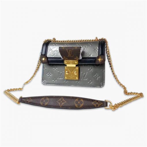 路易威登/LV WYNWOOD 手袋,見證工藝與思維的邂逅,Monogram Vernis 漆皮碰撞 Monogram 帆佈飾邊,金屬件細節追溯品牌傳統行李箱設計,恰到好處的構型足以容納所需,款號:M90445【編號】M90445#L068【顏色】銀灰色【尺寸】21 X 14 X 9 cm【規格】翻蓋開合超細纖維襯裡內貼袋鏈條肩帶【附屬品】防塵袋