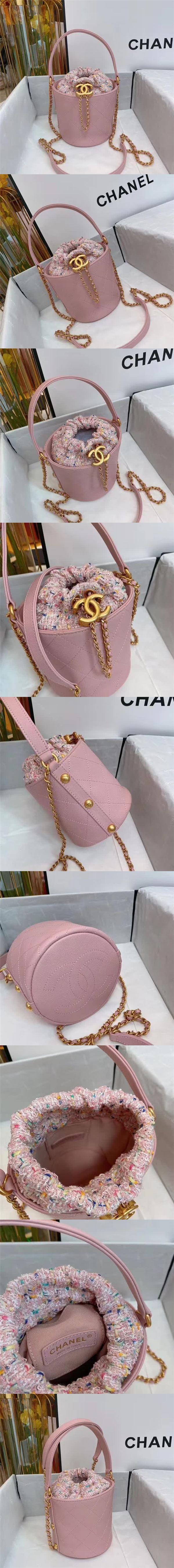 香奈兒/Chanel 桶包系列,選用小牛皮精心裁制而成,小水桶特別很迷人,顏值與實用性並存,日常逛街或旅行凹造型都超適合,把長肩帶收到包裡手提也nice,款號:AS1478【編號】AS1478#A125【顏色】粉色【尺寸】13 X 17 X 13 cm【規格】皮革提手抽繩開合織物襯裡鏈條肩帶【附屬品】防塵袋