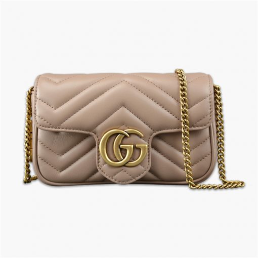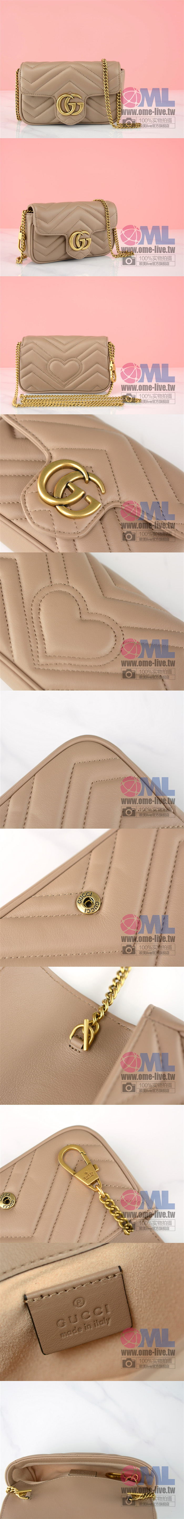 高仿古馳/Gucci 迷你鏈條包,采用波浪紋絎縫皮革,柔軟造型,翻蓋封口配以雙 g 金屬配件,彈簧扣,超細纖維襯裡,外觀類似麂皮,內配有鑰匙扣,款號:476433