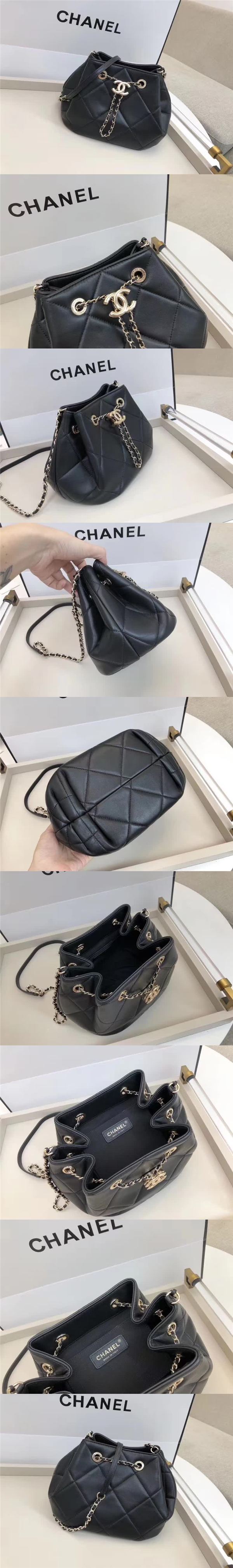 香奈兒/Chanel 桶包系列,選用小羊皮精心裁制而成,大菱格復古潮流,百搭休閑,搭配套裝小短褲超可,款號:AS1801【編號】AS1801#A125【顏色】黑色【尺寸】18 X 14 X 15 cm【規格】抽繩開合織物襯裡內貼袋鏈條肩帶【附屬品】防塵袋