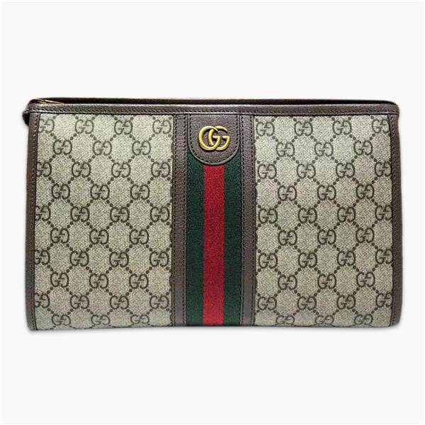 高仿古馳/Gucci Ophidia 系列洗漱包,手拿包,運用GG Supreme高級人造帆佈精心制作而成,同時飾以品牌最具辨識度的兩個經典標志性元素—紅綠條紋織帶和雙G造型配件,款號:598234