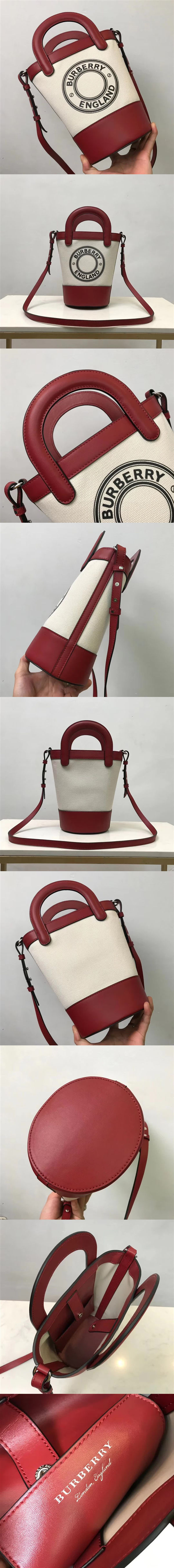 巴寶利/Burberry 水桶包,采用馬術風格的棉質帆佈搭配撞色皮革邊緣設計,裝飾品牌徽標圖案,包款版型精巧,可用頂部提柄手拎,或以可調式肩背帶攜帶,款號:80192121【編號】80192121#B688【顏色】紅色【尺寸】31 X 26 X 13 cm【規格】皮革手柄摁扣開合無襯裡內貼袋可拆卸可調節肩帶【附屬品】防塵袋