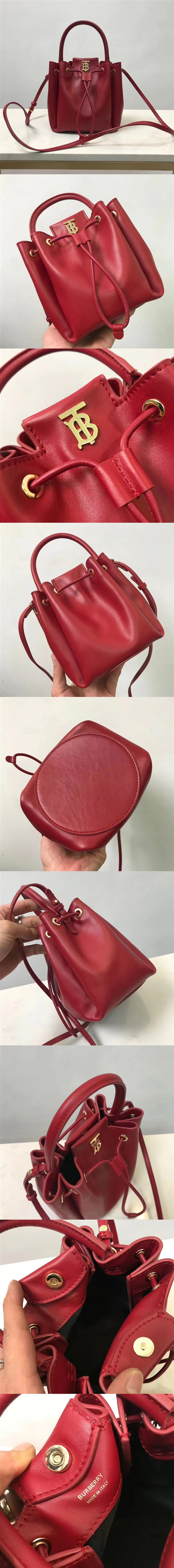 巴寶利/Burberry 水桶包,柔和立體版型設計,精選意大利鞣制皮革打造,裝飾 Thomas Bur專屬標識,頂部提柄手拎,或用可拆式背帶攜帶,隨時解放雙手,款號:80285411【編號】80285411#B688【顏色】紅色【尺寸】17.5 X 16 X 15cm【規格】皮革手柄抽繩摁扣開合織物襯裡可調節肩帶【附屬品】防塵袋