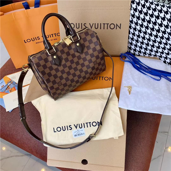 路易威登LV SPEEDY 25 手袋,以標志性 Damier Ebène 帆佈制成,盡顯經典迷人魅力,該包無論手提,肩背或斜背,都令使用者流露無盡優雅,款號:N41368