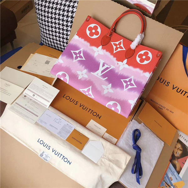 路易威登LV ONTHEGO 手袋, Tote 包追隨傳統絞染工藝,將面料打結,折迭後染色,展現夏季抒寫的清新海灘意趣,肩帶和手柄令充裕空間隨行,滿足日常所需,款號:M45121