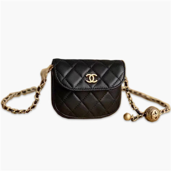 香奈兒/Chanel waist bag 小腰包,火熱小金球系列,整個包身跟蓋頭都是做半圓形,看瞭會滿滿的心動,久違的復古風,迷你又精緻,出街凹造型神器,形狀是滿滿的風,款號:A01462【編號】A01462#H028【顏色】黑色【尺寸】9 X 10.5 X 2.5 cm【規格】翻蓋開合織物襯裡可調節鏈條帶【附屬品】防塵袋