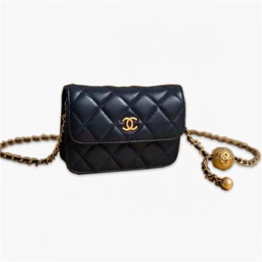 【高仿】香奈兒/Chanel 口蓋包,圓球吊墜裝飾可當腰包,單肩,斜挎,一包三用,鏈條可長短隨意調節,進口羊皮,手感柔軟細膩舒適,車鑰匙,小紙巾,口紅,都可收入囊中,款號:A01465