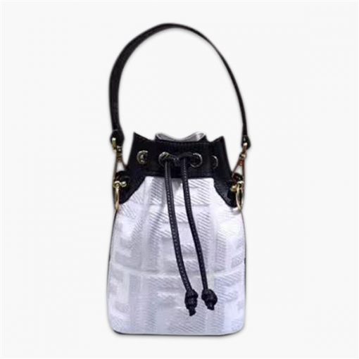 芬迪/Fendi Mon Tresor 水桶手袋,選用牛仔佈材質精心裁制,飾有刺繡FF圖案,配有抽繩和金屬標志裝飾,配一長一短兩條肩帶,可單肩背或斜挎【編號】B062【顏色】白色【尺寸】18 X 11.5 X 10 cm【規格】可拆卸提手抽繩開合棉麻襯裡細長肩帶【附屬品】防塵袋