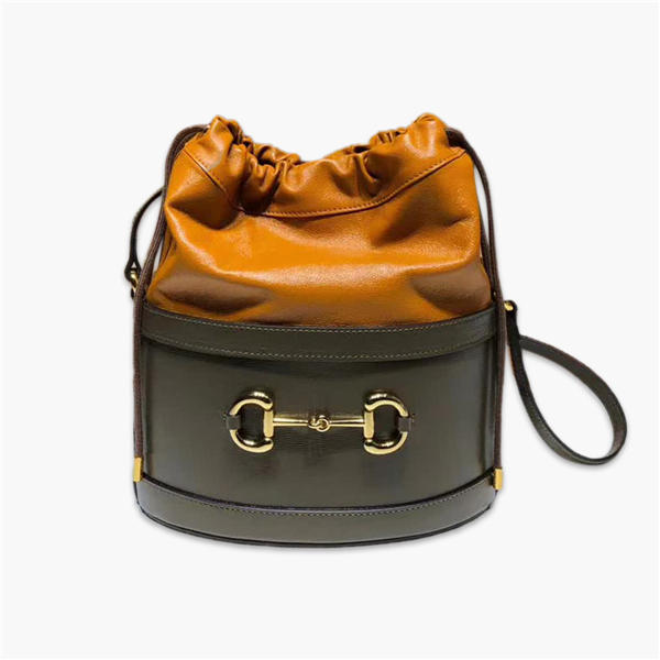 古馳/Gucci 1955 馬銜扣水桶包,靈感源自典藏設計,巧妙糅合經典細節與現代精神,強調瞭馬銜扣這一品牌標志性設計元素,富有現代氣息的混搭材質相映成趣,運用黑色織紋和柔軟皮革雙重材質營造出獨具一格的同色調效果,彰顯時尚風范,款號:602118【編號】602118#G075【顏色】橙/棕【尺寸】25 X 22.5 X 12 cm【規格】抽繩開合超細纖維襯裡內貼袋可調節肩帶【附屬品】防塵袋