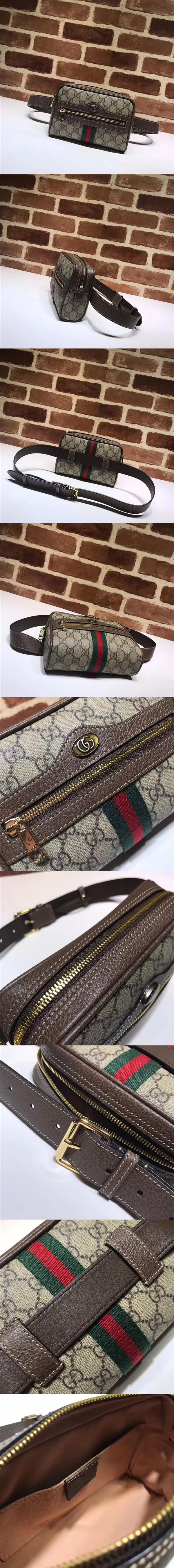 高仿古馳/Gucci Ophidia 系列腰包,運用 GG Supreme高級人造帆佈精心制作而成,同時飾以品牌最具辨識度的兩個經典標志性元素—紅綠條紋織帶和雙G造型配件,款號:517076