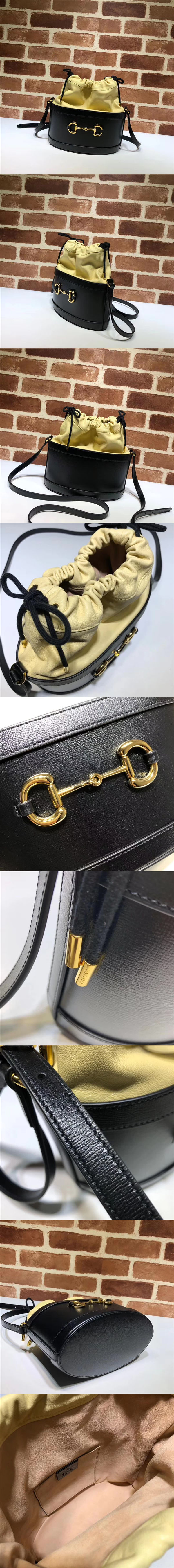 古馳/Gucci 1955 馬銜扣水桶包,靈感源自典藏設計,巧妙糅合經典細節與現代精神,強調瞭馬銜扣這一品牌標志性設計元素,富有現代氣息的混搭材質相映成趣,運用黑色織紋和柔軟皮革雙重材質營造出獨具一格的同色調效果,彰顯時尚風范,款號:602118【編號】602118#G075【顏色】杏/黑【尺寸】25 X 22.5 X 12 cm【規格】抽繩開合超細纖維襯裡內貼袋可調節肩帶【附屬品】防塵袋