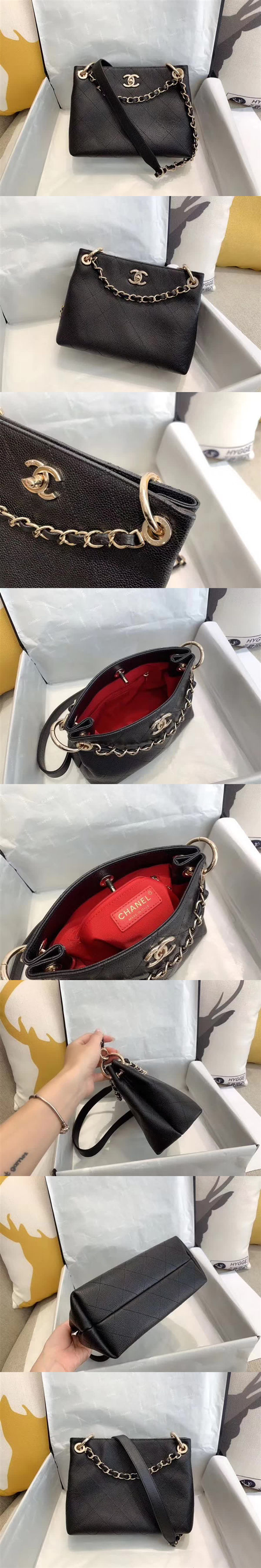 【高仿】香奈兒/Chanel 嬉皮手袋,采用牛皮耐磨魚子醬,一改高桶嬉皮風格,橫版上身巨好看,淺金色金屬,兩個大環乍一眼愣是給看成Gxt,軟軟的質感,nice,款號:AP08359