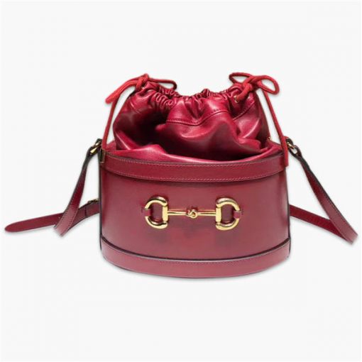 古馳/Gucci 1955 馬銜扣水桶包,靈感源自典藏設計,巧妙糅合經典細節與現代精神,強調瞭馬銜扣這一品牌標志性設計元素,富有現代氣息的混搭材質相映成趣,運用黑色織紋和柔軟皮革雙重材質營造出獨具一格的同色調效果,彰顯時尚風范,款號:602118【編號】602118#G075【顏色】紅色【尺寸】25 X 22.5 X 12 cm【規格】抽繩開合超細纖維襯裡內貼袋可調節肩帶【附屬品】防塵袋