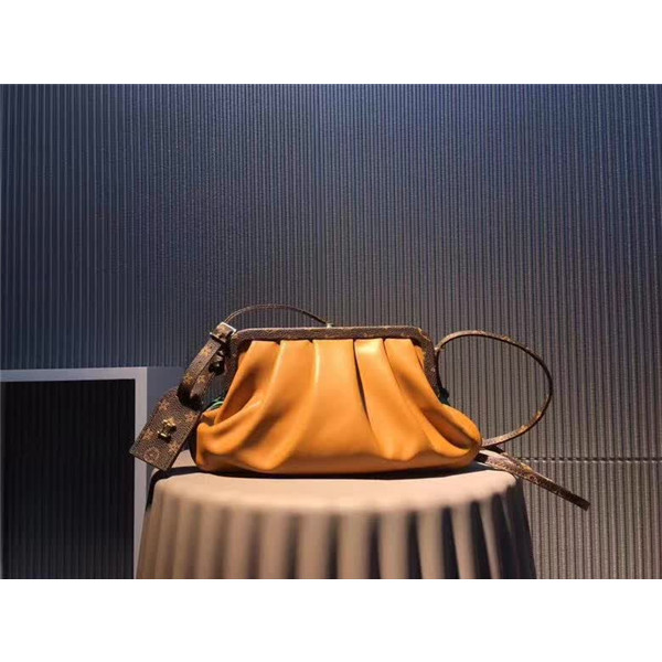 高仿芬迪Fendi橢圓形迷你手袋,雙頭拉鏈開合。配備內部隔層和金色金屬件。手袋配有手柄和可調節、可拆卸式肩帶,可手提、肩背或斜挎。款號:6053