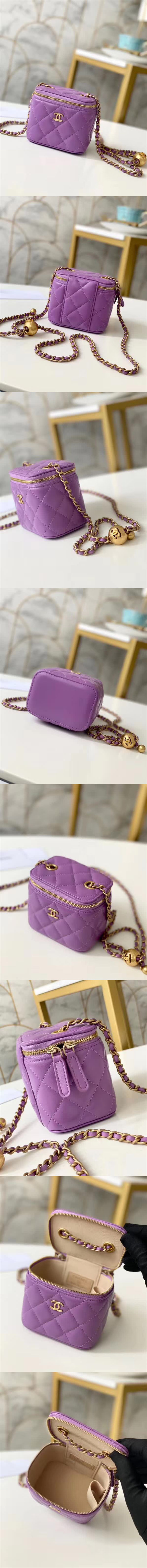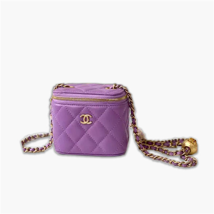 香奈兒/Chanel Mini化妝箱,簡直不要太可愛,全銅金屬球質感滿分,上身超好看,小包有一股特別的魔力,款號:A88828【編號】A88828#H028【顏色】紫色【尺寸】11 X 8.5 X 7 cm【規格】拉鏈開合織物襯裡內插袋可調節鏈條肩帶【附屬品】防塵袋