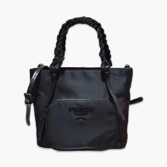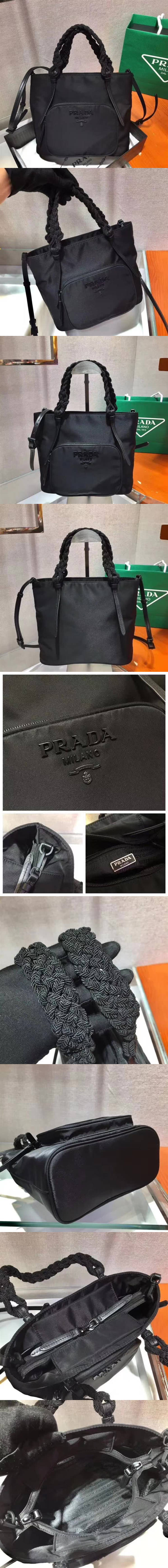 【高仿】普拉達/Prada 編織繩購物袋,采用進口降落傘佈料和頂級全啞光五金,具有經典元素味道,手挽采用純手工編織手拎袋,配可以拆卸的長肩帶,顯得更外時尚和大氣,款號:1BA207