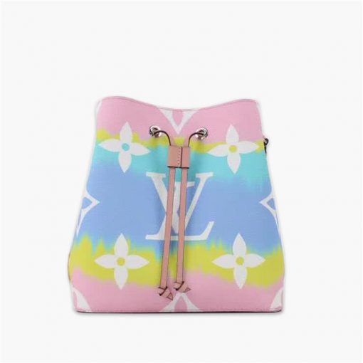 路易威登/LV Escale 系列 NéoNoé 水桶包,取材紮染 Monogram 帆佈,其別致圖案源自日本絞染工藝中將面料打結後染色的傳統手法,可拆卸肩帶提供肩背或斜挎選擇,款號:M45124【編號】M45124#L027【顏色】粉色【尺寸】26 X 26 X 17.5 cm【規格】抽繩開合超細纖維襯裡2個隔層1個內拉鏈袋可拆卸可調節肩帶【附屬品】防塵袋