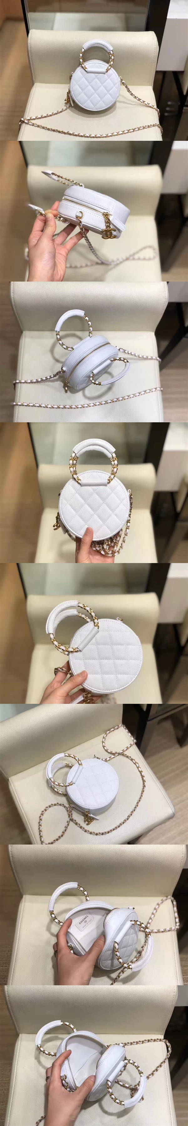 香奈兒/Chanel 手環包,真的超nice,凹造型妥妥的,上身超好看,就像春日裡①縷陽光 越看越喜歡,款號:A88823【編號】A88823#A125【顏色】白色【尺寸】12 X 12 X 4.5 cm【規格】頂部圓形手柄拉鏈開合織物襯裡內貼袋鏈條肩帶【附屬品】防塵袋