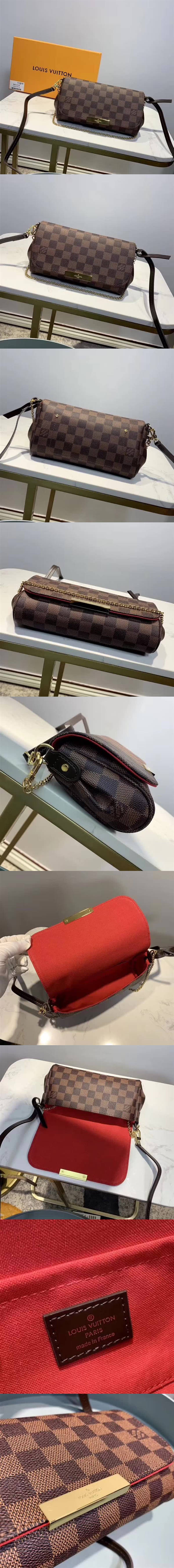 高仿路易威登/LV FAVORITE 手袋,以 Damier Ebène 帆佈制成,亮麗嫵媚,手包外形討喜迷人,簡約柔美的造型令其適合在各種場合中使用,款號:N41129