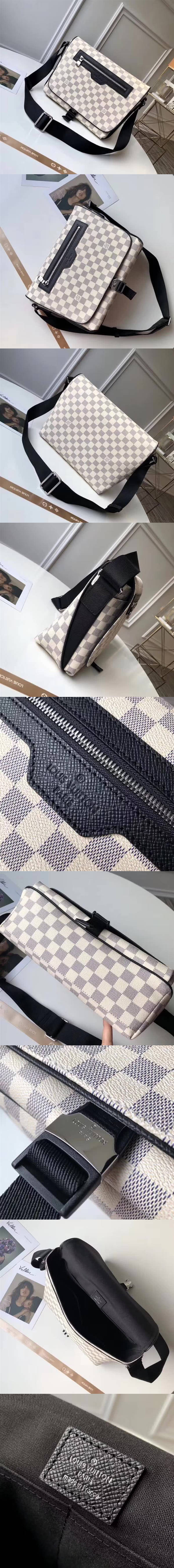 高仿路易威登/LV MATCHPOINT 郵差包,由經典Damier Cobalt塗層帆佈與柔軟的Taiga皮革裁制而成,融合經典造型與網眼佈,錦綸等高性能運動設計元素,款號:N40019