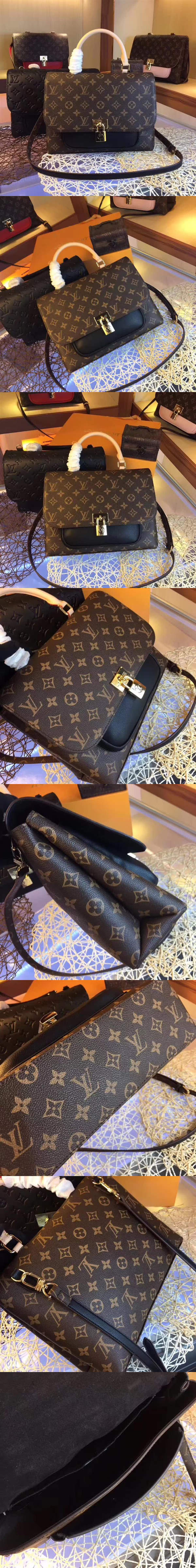 路易威登/LV Marignan 手袋,沿襲經典信使包設計,選用經典 Monogram 帆佈拼色彩色皮革精心裁制而成,塑造井然有序的充裕內裡,款號:M44544【編號】M44544#2031【顏色】老花/黑【尺寸】28 X 9 X 20.5 cm【規格】皮革手柄翻蓋開合織物襯裡2個隔層內貼袋金屬掛鎖可拆卸可調節肩帶【附屬品】防塵袋