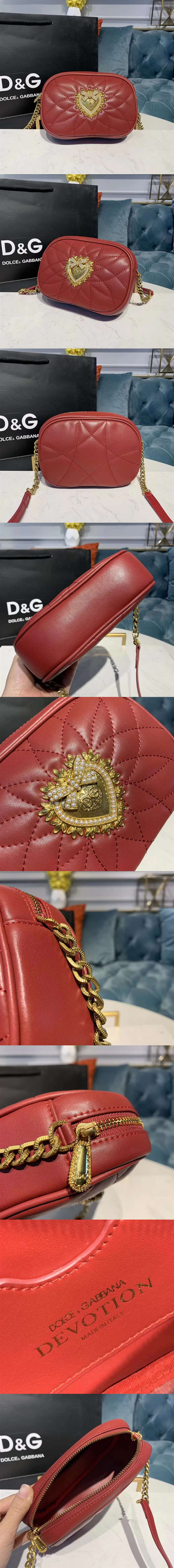 杜嘉班納/D&G Devotion 系列相機包,全新斜挎相機包,小巧圓弧造型再續經典,摩登女士專屬配飾,采用柔軟絎縫納帕皮革制成,正面點綴復古鈀色愛心珠寶飾件【編號】A139【顏色】紅色【尺寸】19 X 5 X 13 cm【規格】拉鏈開合皮革襯裡內貼袋可調節肩帶【附屬品】防塵袋