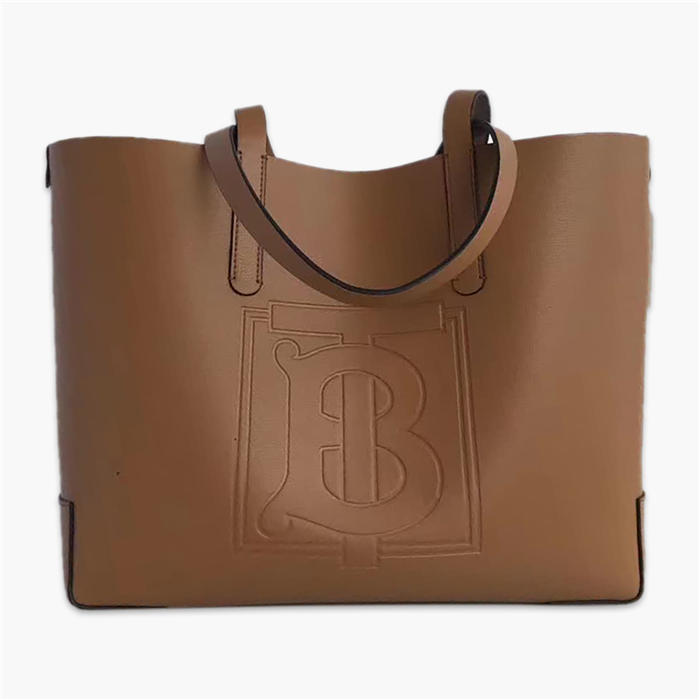 巴寶利/Burberry 敞口式托特包,采用小牛皮與塗層皮革材質精心打造,正面與內襯裝飾專屬標識壓花圖案,簡約時尚,款號:80196121【編號】80196121#B688【顏色】棕色【尺寸】35 X 29 X 12 cm【規格】雙皮革提手塗層襯裡內拉鏈袋【附屬品】防塵袋