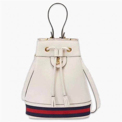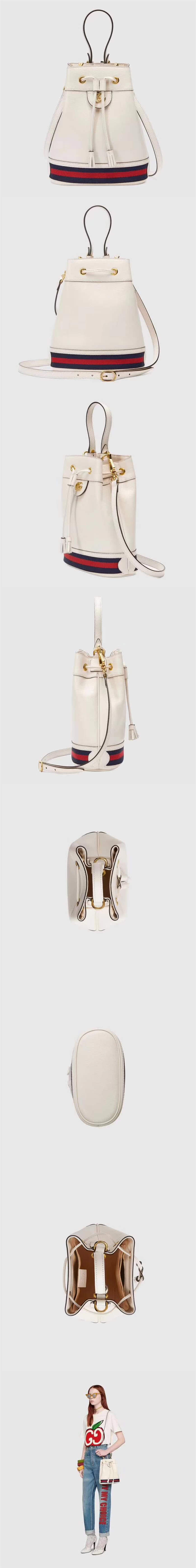 古馳/Gucci Ophidia系列水桶包,選用意大利質感小豬紋皮革裁制而成,底部飾以紅藍條紋鑲嵌織帶。單提手與可拆卸肩帶設計相得益彰,打造兩種不同的攜帶選擇,款號:610846【編號】610846#G088【顏色】白色【尺寸】20.5 X 26 X 11 cm【規格】皮革手柄抽繩開合超細纖維襯裡3個內貼袋可拆卸可調節肩帶【附屬品】防塵袋