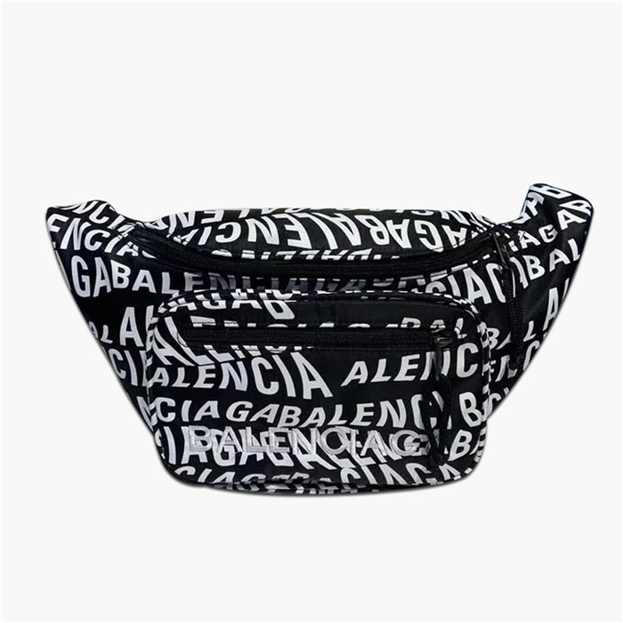 高仿巴黎世傢/BALENCIAGA 腰包,選用品牌標識印花尼龍材質裁制而成,簡約兩用包,可做胸包或者腰包,簡單輕便,上身效果超贊