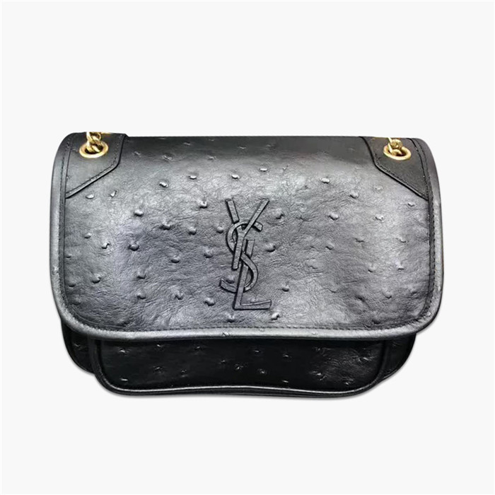 聖羅蘭/SLY NIKI 小號手袋,選用鴕鳥紋小牛皮精心裁制而成,飾有真皮包覆的字母聯結標識,經典時尚,款號:548943【編號】548943#Y073【顏色】黑色【尺寸】22 X 16.5 X 12 cm【規格】翻蓋開合超細纖維襯裡2個隔層內貼袋鏈條肩帶【附屬品】防塵袋