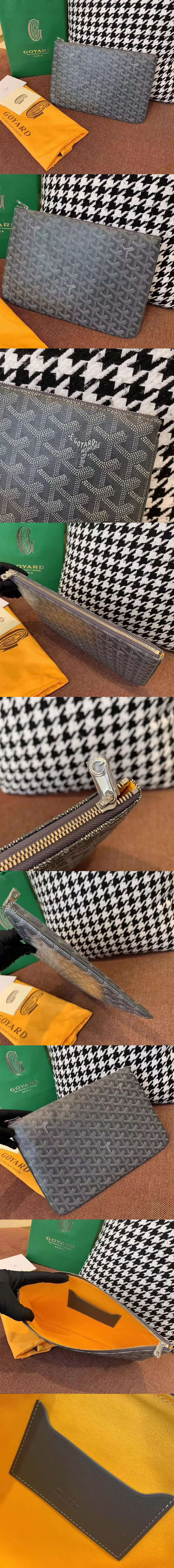 Goyard戈雅 手拿包,選用品牌獨有的帆佈面料飾以皮革包邊裁制而成,配色經典,做工精致,老花紋也特別耐看【編號】D023【顏色】灰色【尺寸】30 cm【規格】拉鏈開合帆佈內襯內貼袋銀色五金配件【附屬品】防塵袋