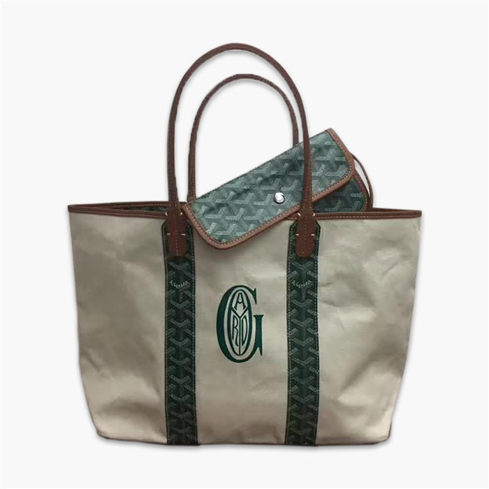 Goyard戈雅 購物袋,新款絲印L0G0,為你準備瞭完美的沙灘伴侶,完美搭配,此款包將成為你不可或缺的單品,雙面可用哦【編號】D023【顏色】綠色【尺寸】47 X 27 X 15 cm【規格】雙皮革提手可拆卸零錢袋正反兩面可用【附屬品】防塵袋