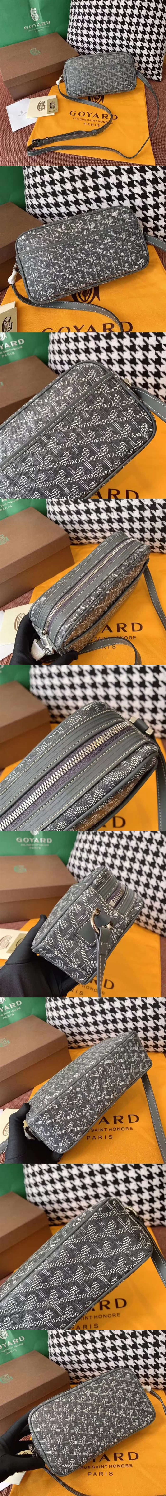 Goyard戈雅 相機包,選用塗層印花帆佈搭配皮革裁制而成,做工精致,明星同款,顏色齊全,實物拍攝【編號】D023【顏色】灰色【尺寸】23cm【規格】正面隔層拉鏈開合銀色五金配件織物襯裡內部拉鏈袋可調節肩帶【附屬品】防塵袋
