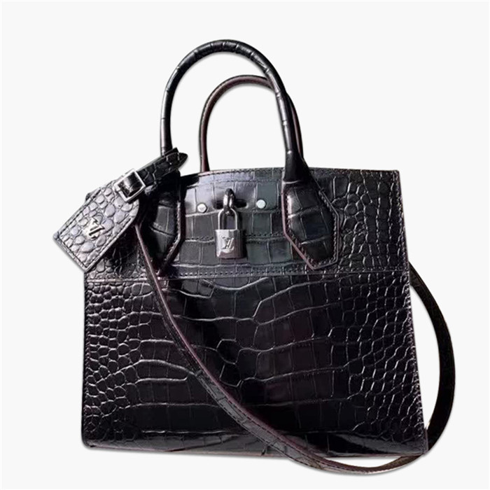 路易威登/LV CITY STEAMER 手袋,選用鱷魚紋小牛皮面料,經上光處理,閃耀迷人,質感奢華,演繹醒目而雋永的碰撞,以清新色調釋放新經典氣質,款號:N92515【編號】N92515#D518【顏色】黑色【尺寸】26.5 × 23 × 13 cm【規格】皮革手柄金屬掛鎖拉鏈隔層鎖扣隔層皮革裡襯內貼袋可拆卸皮質銘牌可拆卸可調節肩帶底部金屬保護腳【附屬品】防塵袋