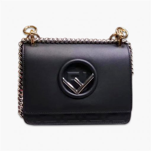 芬迪/Fendi KAN I F 手袋,選用小牛皮精心裁制而成,帶有 F 徽標,翻蓋下側飾有凸紋壓花FF圖案印花標志,款號:2917【編號】2917#A359【顏色】黑色【尺寸】19 cm【規格】翻蓋開合超細纖維襯裡內貼袋可滑動鏈條肩帶【附屬品】防塵袋