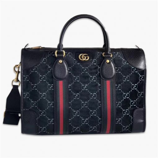 【高仿】古馳/Gucci 行李袋,匠心選用絨佈全新繡花搭配皮革裁制而成,提手下方的標志性織帶細節和金屬雙 G 標志,令整款設計更添魅力,款號:574966