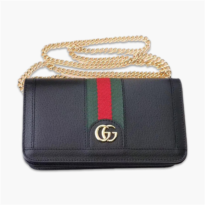 高仿古馳/Gucci 鏈條包,采用牛皮裁制而成,飾以標志性彩帶,點綴雙G徽標,全新演繹時尚潮流風,款號:523158
