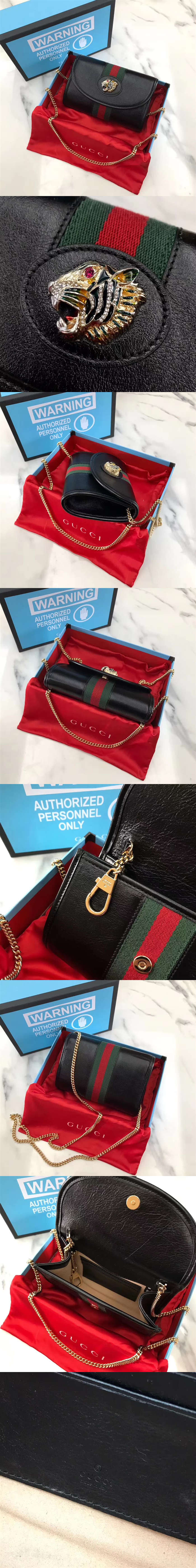 【高仿】古馳/Gucci 鏈條包,采用意大利牛皮裁制而成,飾以標志性彩帶,點綴彩色琺瑯水晶虎頭,全新演繹時尚潮流風,款號:573797