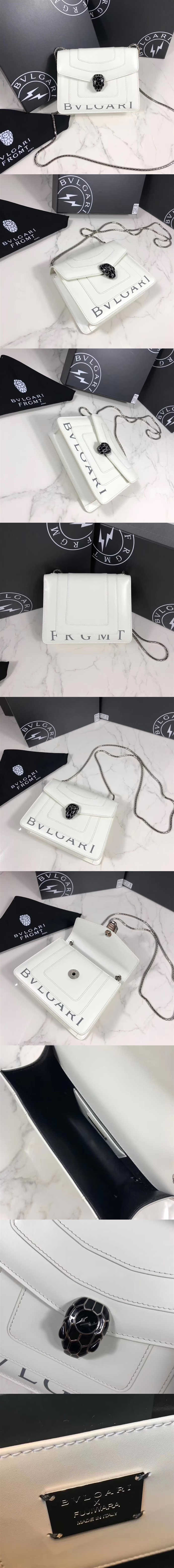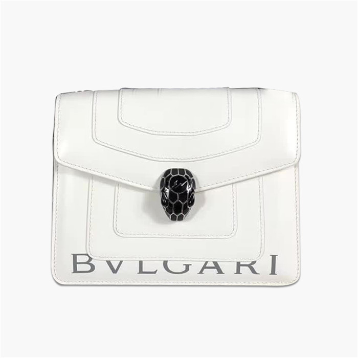 寶格麗/Bvlgari 鏈條包,最新印花款,選用進口意大利小牛皮裁制而成,點綴黑色琺瑯蛇首形搭扣,雙眼鑲嵌黑寶石,不僅僅是優雅,更是張揚的野性,款號:B34559【編號】B34559#C028【顏色】白色【尺寸】20 X 14 X 4.5 cm【規格】塗層琺瑯蛇首翻蓋開合皮革襯裡蛇骨圓形鏈條肩帶【附屬品】防塵袋