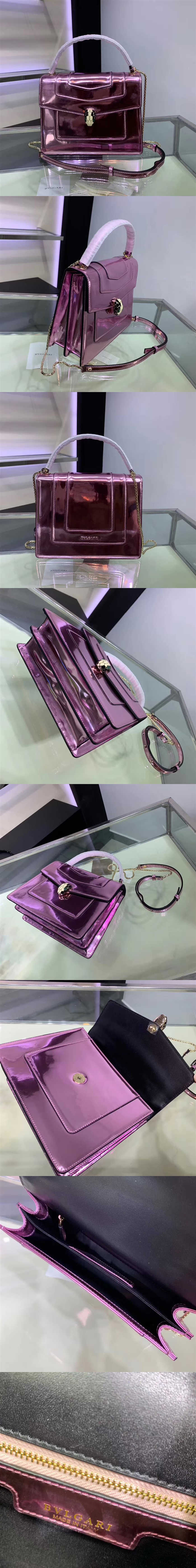寶格麗/Bvlgari 風琴包25,選用漆皮小牛皮裁制而成,點綴彩色琺瑯蛇首形搭扣,雙眼鑲嵌孔雀綠松石,不僅僅是優雅,更是張揚的野性,款號:38629【編號】38629#C028【顏色】紫色【尺寸】25 X 20 X 10.5 cm【規格】皮革手柄翻蓋開合織物襯裡2個隔層1個拉鏈袋可調節蛇骨圓形鏈條肩帶【附屬品】防塵袋