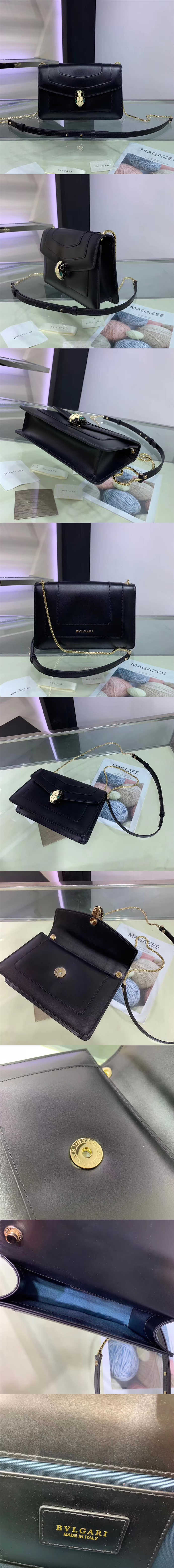【高仿】寶格麗/Bvlgari 鏈條包22,選用進口小牛皮裁制而成,點綴彩色琺瑯蛇首形搭扣,雙眼鑲嵌孔雀綠松石,不僅僅是優雅,更是張揚的野性,款號:39174