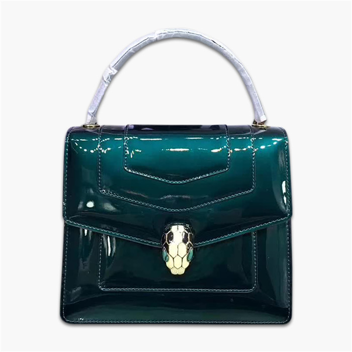 寶格麗/Bvlgari 風琴包20,選用漆皮小牛皮裁制而成,點綴彩色琺瑯蛇首形搭扣,雙眼鑲嵌孔雀綠松石,晶瑩剔透,簡約實用,滿足你不同需求,款號:38329【編號】38329#C028【顏色】綠色【尺寸】20 X 16 X 9 cm【規格】皮革手柄翻蓋開合織物襯裡3個隔層1個卡槽可調節蛇骨圓形鏈條肩帶【附屬品】防塵袋